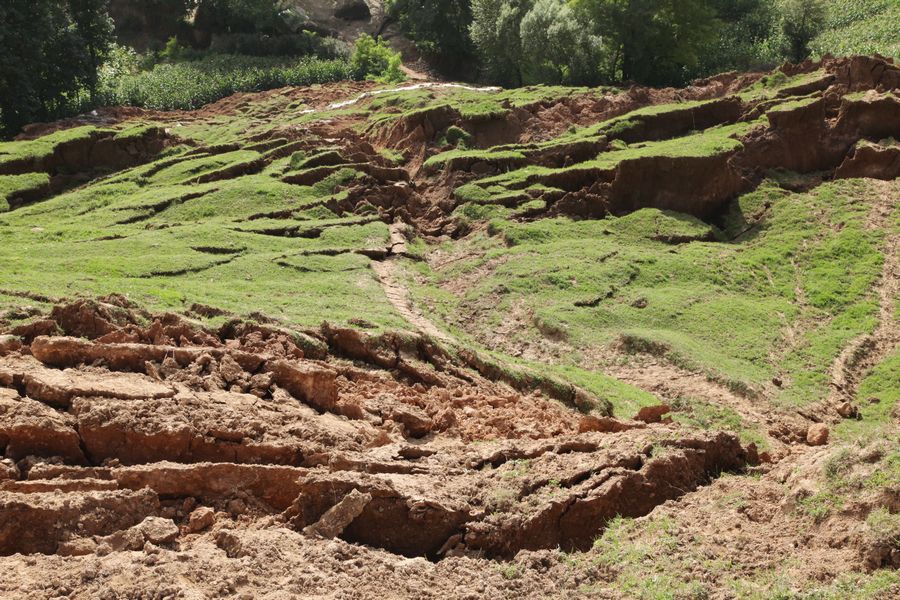 8月3日早晨7:00左右,清水县黄门乡薛堡村薛家自然村村庄背山薛家堡子出现滑坡至14:30分下滑最大处约达18米,滑坡土方量约23万立方,直接威胁该村20户110人生命财产安全。