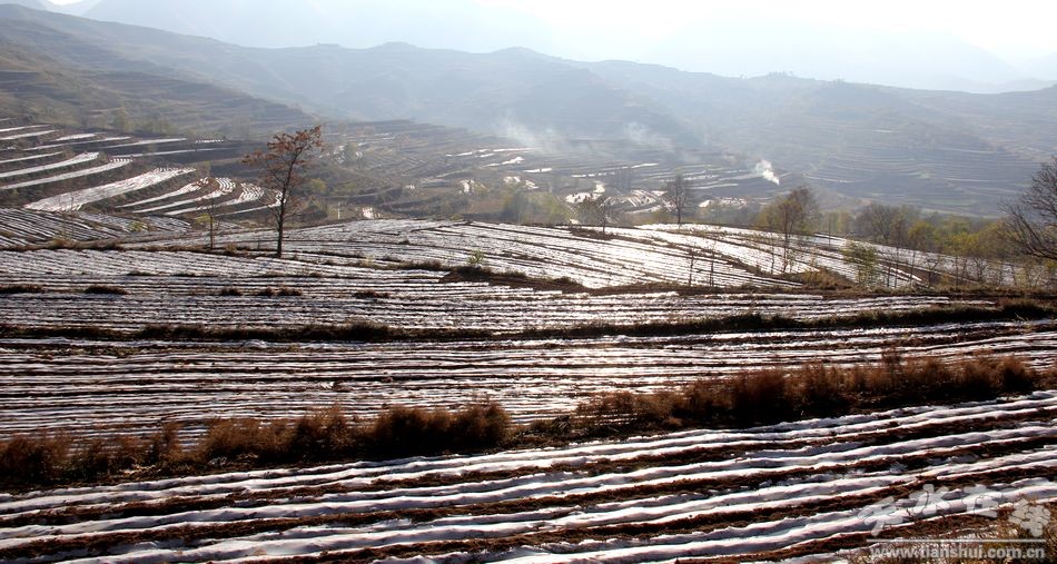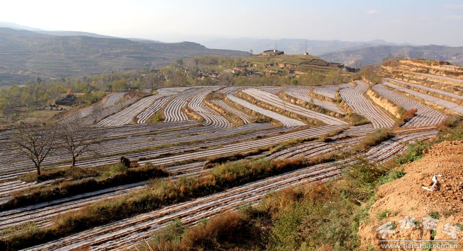 在今年秋覆膜工作过程中,清水县采取“三抓”,加快了铺膜进度,确保了覆膜质量。一是抓落实,清水县委县政府在加大督查力度的同时,对乡镇秋铺膜工作进展情况实行日通报制度,农口部门及各乡镇统一实行“5+2”工作制度,取消了周末假期,全体干部职工下乡上地指导和帮助秋季铺膜;二是抓保障,全县积极筹措资金,统一调配地膜300余吨,及时供给各乡镇,保障秋季铺膜工作的顺利开展;三是抓技术,农技人员深入田间地头,指导群众规范铺膜,配套1200多台(套)农机具,加快机械覆膜进度,同时,在山区采取邻里相帮、亲戚互助,建立互助组的形式,全面推进。通过半个月的奋战,预计11月中旬将全面完成10万亩秋铺膜。