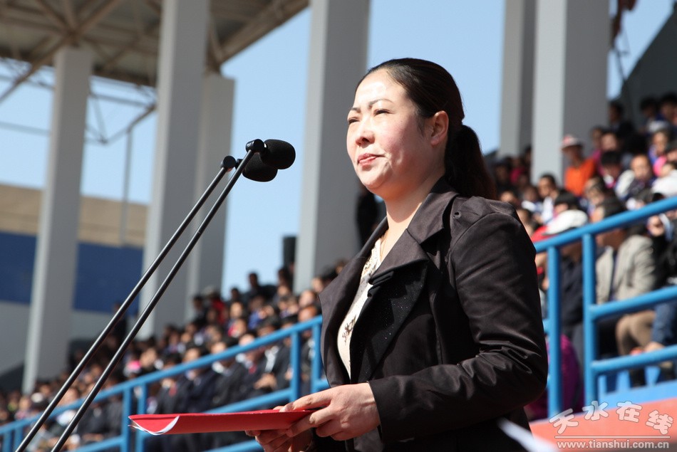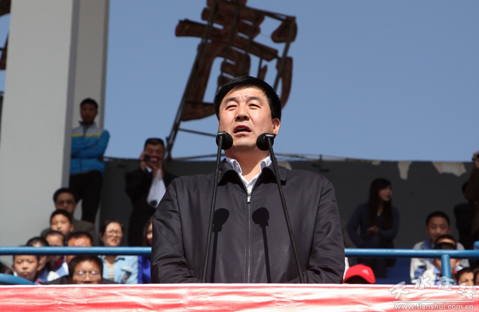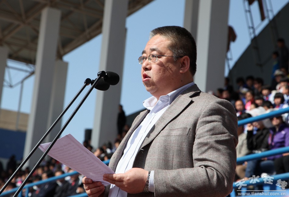 市体育局副局长吴承炜出席开幕式并讲话,他说,近年来,清水县坚持“育人为本、全面发展”的教育思想,全面实施《国家学生体育健康标准》,积极开展体育活动,以促进师生全面发展、终身健康为目标,促使学校体育工作理念更新、措施更强、质量更高,掀起了青少年体育锻炼的热潮,推动了学校体育工作的全面发展。去年,对全民健身活动中心暨县体育场进行升级改造,不仅提高了清水的城市品位,而且满足了全县青少年学生开展体育活动和广大市民活动健身的需要。我相信,本次运动会必将进一步增强清水县师生的强身健体意识,提高师生的身体素质,促进清水县体育教学工作的全面发展。我衷心希望以这次运动会为契机,进一步加强学校体育基础设施建设,强化体育后备人才的培养,为国家、省、市输送更多的体育优秀人才,为开创清水体育事业新局面作出积极贡献。