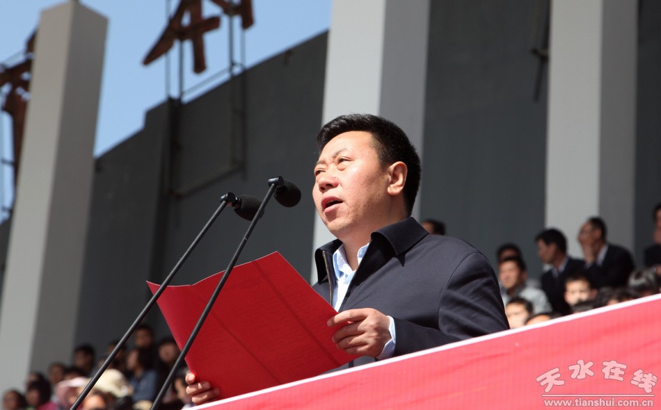 (县委书记刘天波宣布“清水县第六届中小学生田径运动会开幕”)