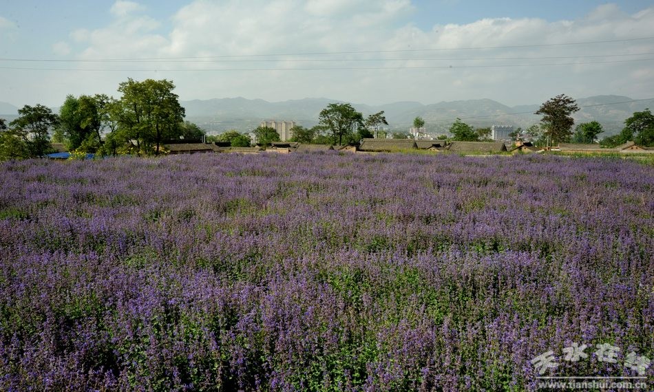 近年来,清水县永清镇通过招商引进兰州天佑香料有限公司,通过土地流转等形式在永清镇李崖北山种植薰衣草等香料植物的同时,试验种植中药材薄荷,薄荷长势良好,五月里花开正艳,格外漂亮。