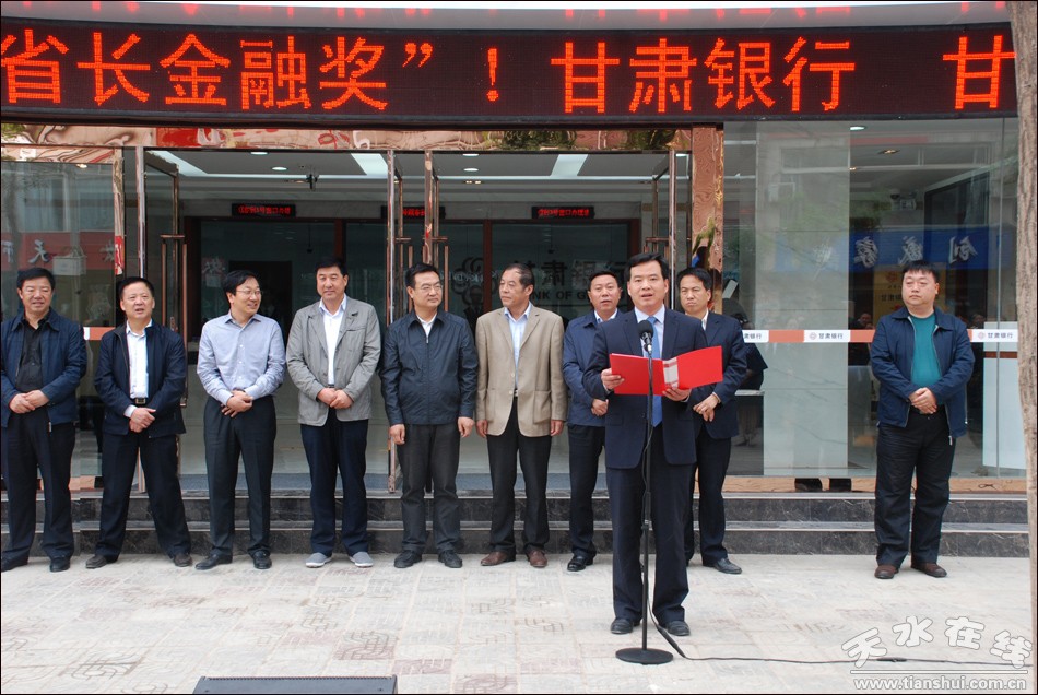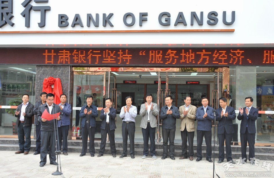 ( 市政府副秘书长杨帆、清水县委书记刘天波为甘肃银行清水支行揭牌)
