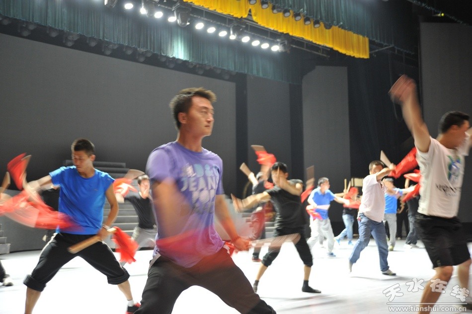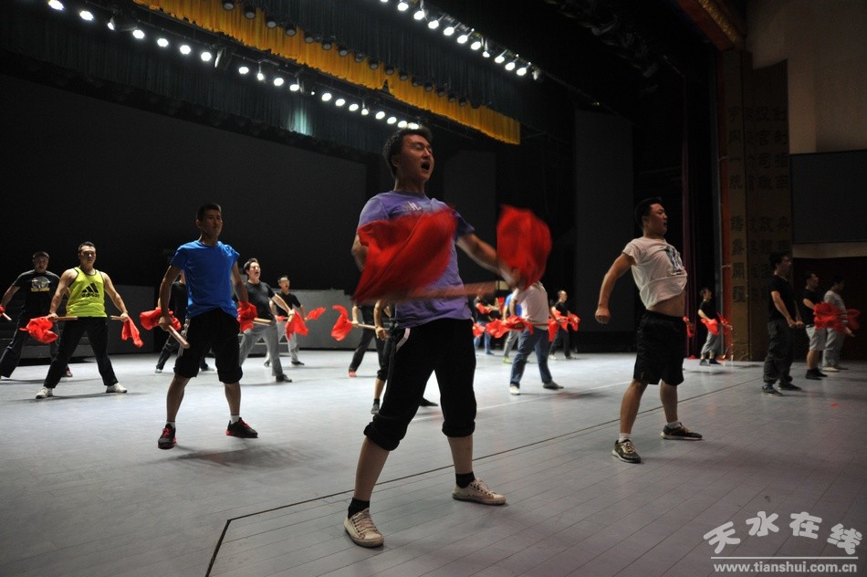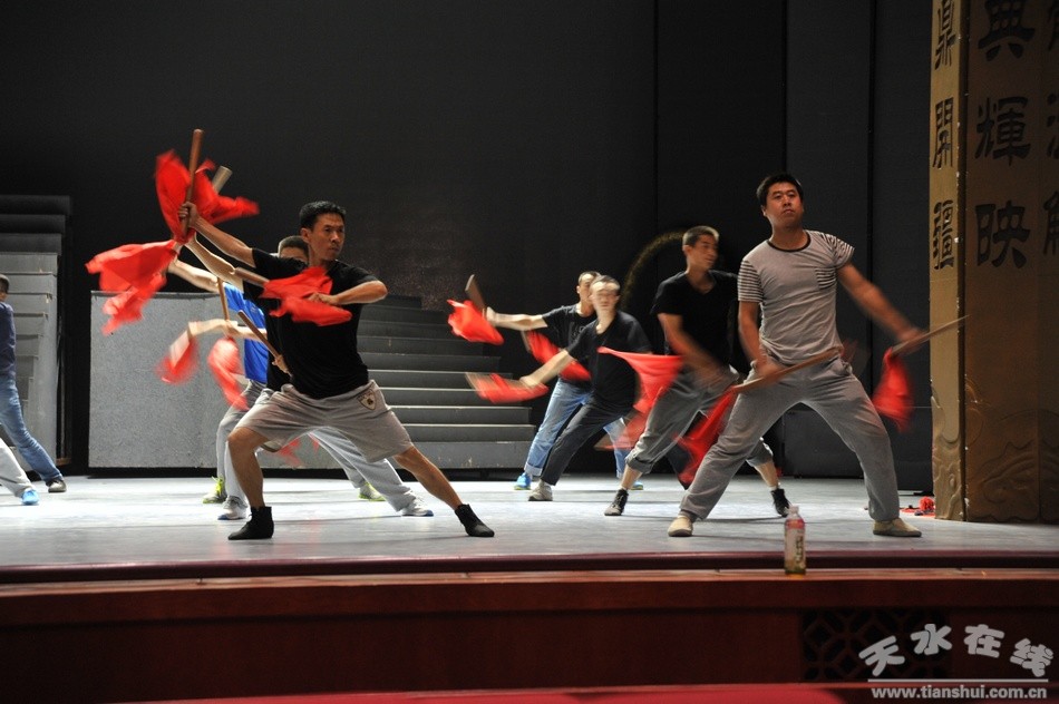 日前,在清水县轩辕大剧院里,由该县精心创编的西秦腔歌舞传奇剧《轩辕大帝》正在加紧排练、打磨,演职人员不辞劳累,刻苦练习基本功,积极备战即将举办的第七届西北五省区秦腔艺术节。