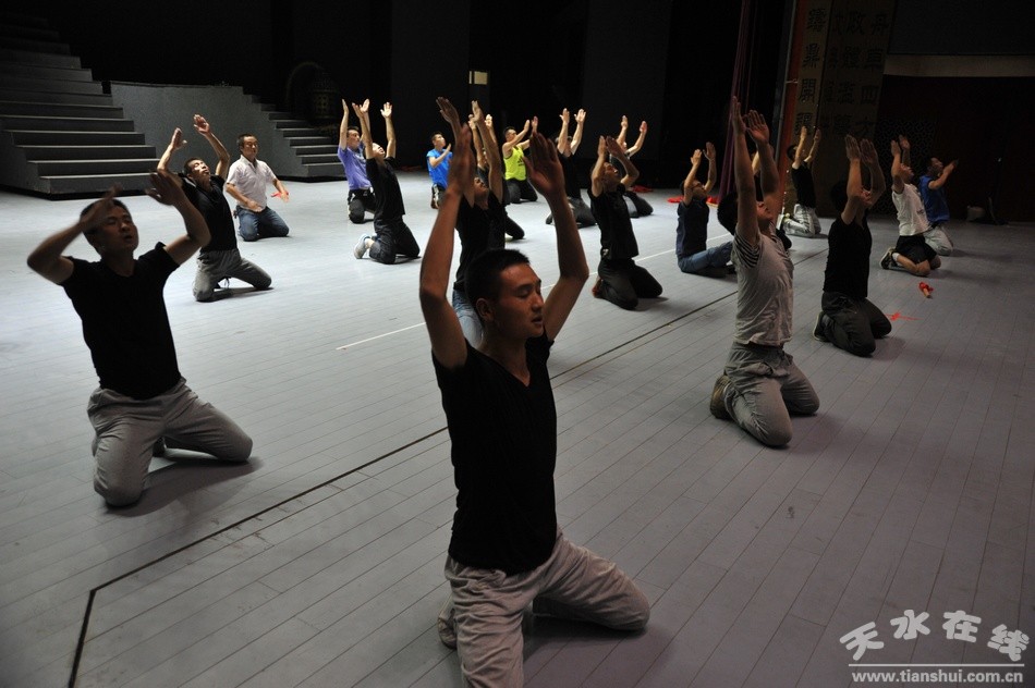 (《轩辕大帝》演职人员刻苦练功,积极备战第七届西北五省区秦腔艺术节)