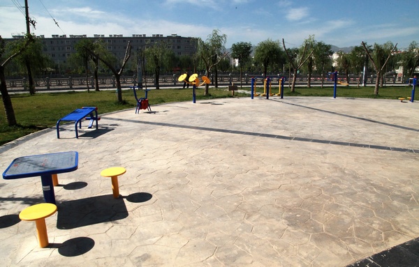 (在轩辕湖健身广场检查体育惠民工程建设情况)