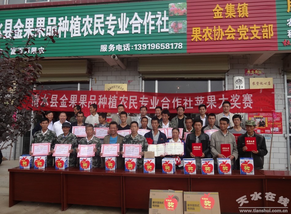 9月1日,由美国杜邦农药驻西北地区代理商赞助,金果果业农民专业种植合作社成功举办示范园观摩暨苹果大奖赛,金集镇、县果业局、科协及杜邦农药公司在甘负责人与金果果业合作社会员150余人参加活动。