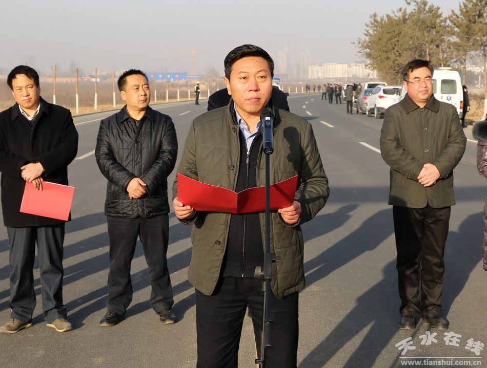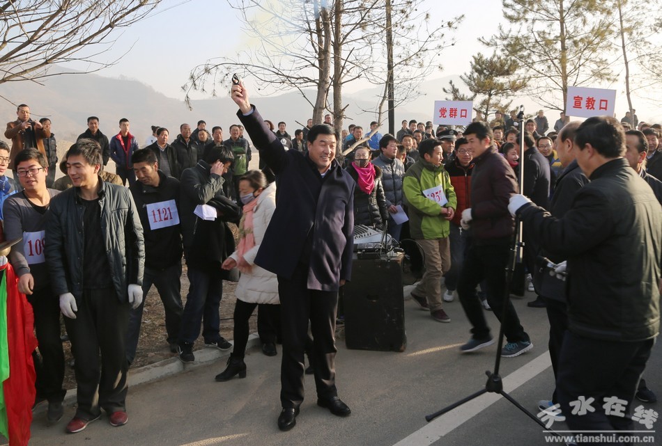 中共清水县委书记刘天波发令起跑;中共清水县委副书记、县长马越垠讲话;县委常委、副县长牛永祯主持开赛仪式。县四大组织全体在家领导出席开赛仪式。