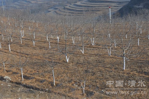 2014年,清水县林果产业坚持按照全省千万亩和全市百万亩优质林果基地建设的总体要求,积极实施“全省核桃大县”战略,牢牢抓住建设60万亩(核桃48万亩,苹果12万亩)干鲜果基地不放松,以创建西灵山等6个5万亩干鲜果示范基地为抓手,指导乡镇精心打造并高标准、高质量完成“3315”工程,即建成了石沟河流域、王河乡南湾梁和车道河流域3个万亩核桃示范基地,西灵山补植补造、红堡镇太阳梁和松树乡友爱湾3 个5000亩核桃示范点,丰望等12乡镇15个1000亩以上优质干鲜果示范基地,全年完成新建干鲜果基地建设5.63万亩,其中:经验收春季完成4.31万亩(核桃4.08万亩,苹果0.23万亩),秋季完成1.32万亩(核桃1.25万亩,苹果0.07万亩)。按照新栽、补植、管理“三结合”的建园要求,在抓好新建园的同时,狠抓历年建园的补植补造和果园综合管理工作,完成补植9.23万亩。