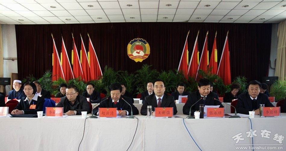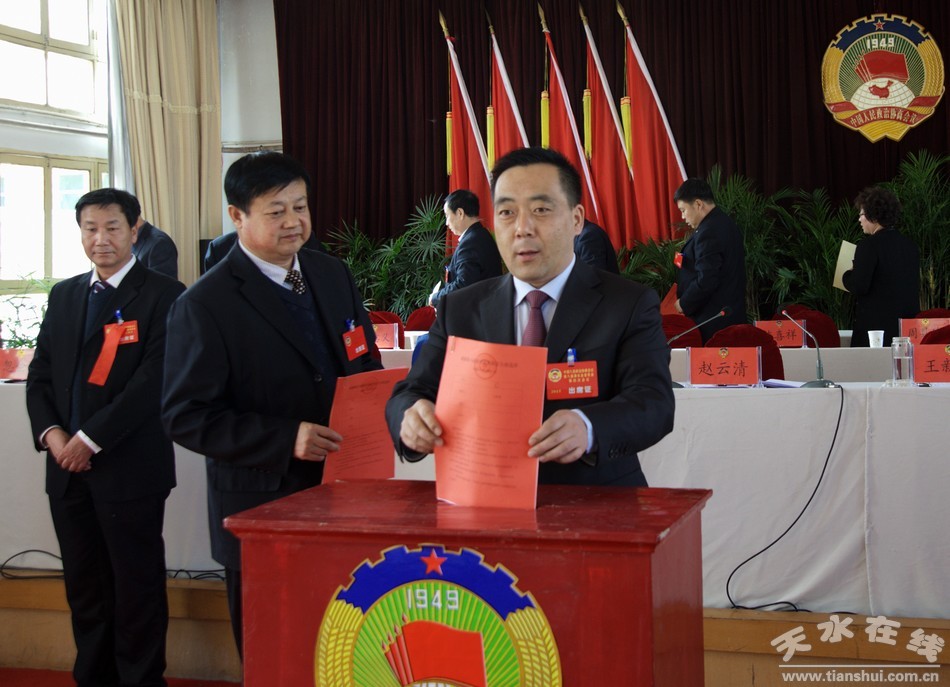 2月13日下午, 清水县政协八届四次会议举行第二次全体会议,进行大会选举,选举县政协主席、副主席、秘书长。会议应到委员125名,实到 115 名,超过全体委员的三分之二,符合《选举办法》规定。