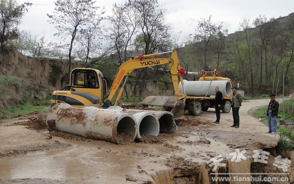 在了解了情况以后,王建兴与村组干部经过座谈商议,决定首先为村民解决出行难问题。经过几天的筹资和协调工作,下基层干部为村民送去了4根通水管涵,并协调调动挖掘机、运输机等机械开始作业,将4根通水管涵并列一排,再加铺垫,形成了一坐简单的便民桥,暂时解决了村民出行难问题。