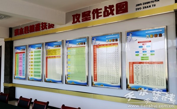 对象上墙,内容上墙,目标上墙,措施上墙……在扶贫攻坚工作纵深推进中,清水县采取挂图作战的方式,把各项指标和任务以图表的形式直观反映,紧盯阶段工作目标,把握完成时间节点,有计划、有步骤的推进各项任务,实现挂图作战、按图销号。