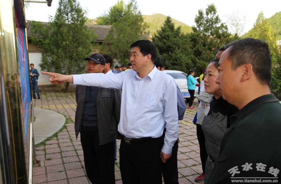 当天,刘天波一行先后深入陇东乡坪道村、赵峡村文化广场、乡卫生院、乡文化站、田湾村国家级核桃示范基地、白沙乡西灵山农业观光园、桑园村养殖小区和蔬菜大棚基地、箭峡村、鲁湾村灾后重建点、温泉汤峪核桃新建园、新城乡新城湾新建核桃园、方湾新农村建设现场、闫川村、新城中学、黄粱村等地,通过实地走访查看、查阅资料、听取汇报、入户了解、观看宣传片等方式,重点就三乡镇“11558”精准扶贫工作、农村环境卫生综合整治、果园建设与后续管理、新农村建设和基层医疗、教育发展情况进行了详细检查。