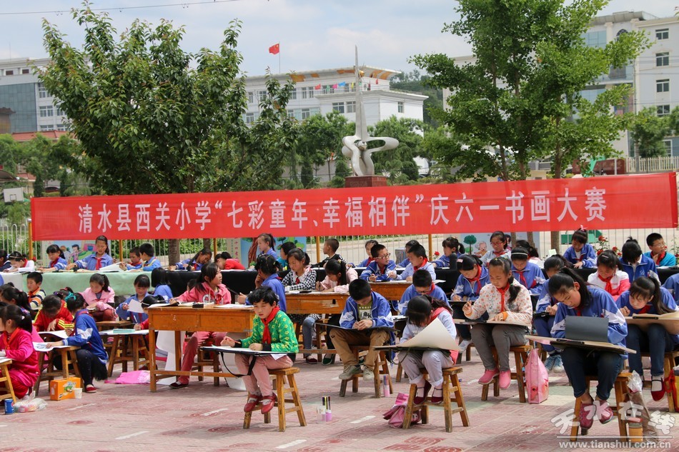 为迎接“六.一”儿童节的到来,营造浓郁的节日氛围,丰富广大师生的课余生活,发掘学生潜能与特长,推动学校精神文明建设。近日,清水县西关小学开展了“七彩童年•幸福相伴”庆“六.一”书画比赛活动,为该校广大师生提供了自我展示的平台,提高了师生的艺术修养,营造出和谐的校园文化氛围。