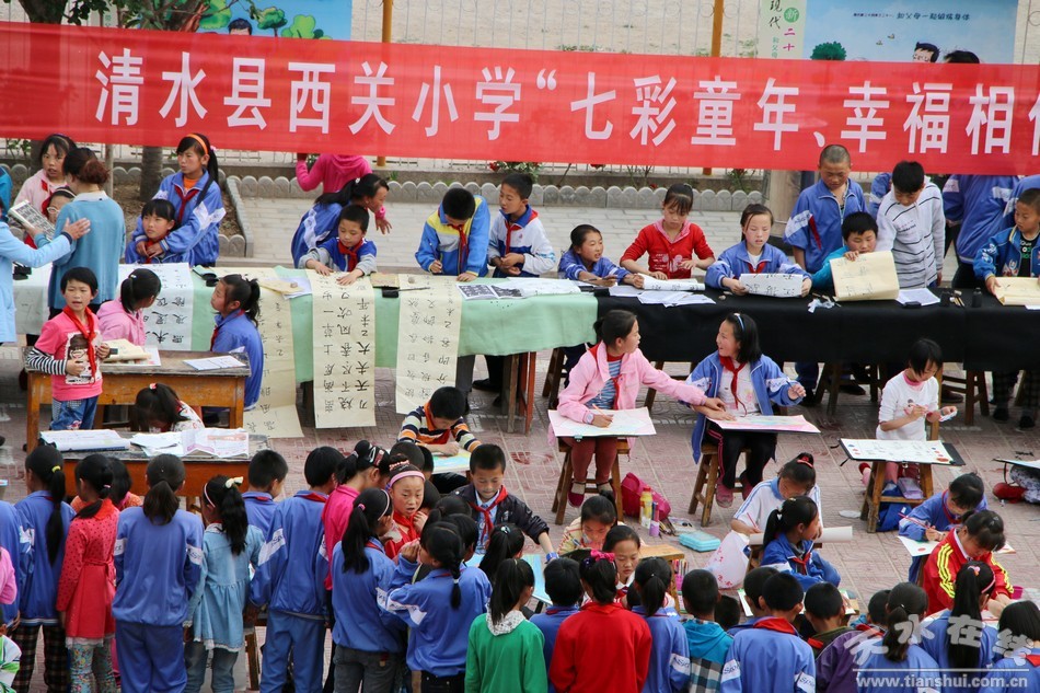 清水县西关小学有着优良的语言文字传统和深厚的文化底蕴,近年来该校以“书法进校园”活动为载体,每学期都举办各种形式的比赛活动和书法艺术教研活动,每个班级每周都上一节书法课,有效的促进了书法艺术进校园活动。
