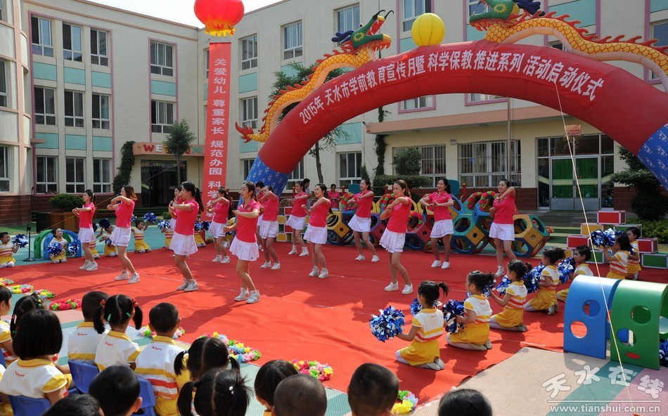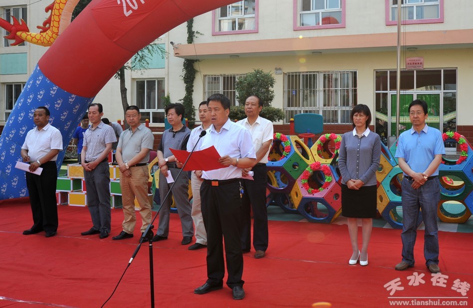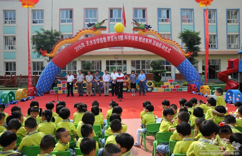 为了进一步指导和推动全社会树立科学保教理念,不断规范幼儿园办园行为,防止和纠正“小学化”现象,营造家庭、社会、幼儿园共同关爱孩子、科学保教、快乐成长的良好氛围,促进全市学前教育持续健康发展。2015年6月19日,天水市学前教育宣传月暨科学保教推进活动启动仪式在清水举行。天水市教育局副局长张笑青,清水县委常委、常务副县长牛永祯出席会议,天水市五县两区教育局分管幼儿教育副局长,各县区幼儿园园长参加了会议。
