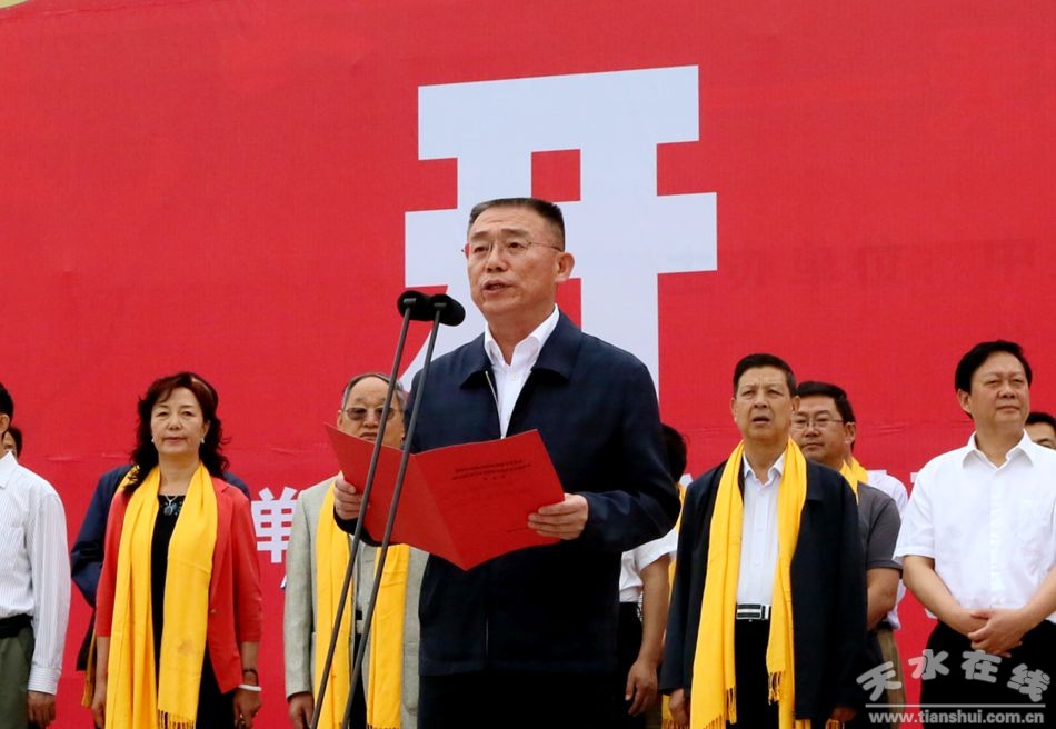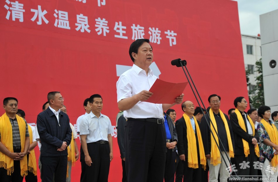 天水市委书记王锐宣布敦煌行•丝绸之路国际旅游节清水县第五届轩辕文化节暨清水温泉养生旅游节开幕。