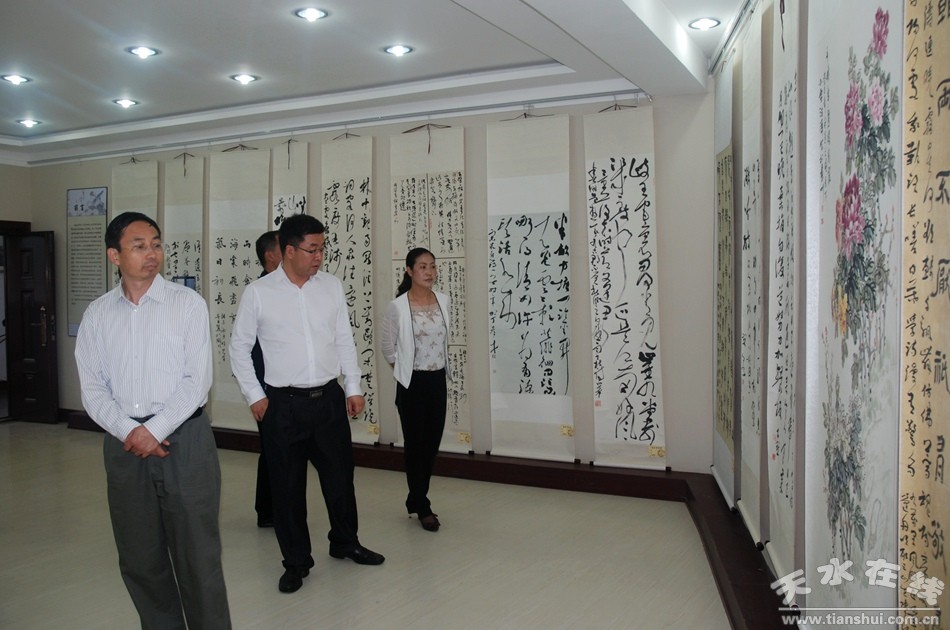 7月3日,敦煌行•丝绸之路国际旅游节清水县第五届轩辕文化节暨清水温泉养生旅游节开幕式结束后,甘肃省文化厅副厅长杨建仁,天水市委常委、宣传部长王正茂一行来到清河湾商贸城,参观了清水县非物质文化遗产展演。清水县委常委、宣传部长张秀丽陪同参观 。