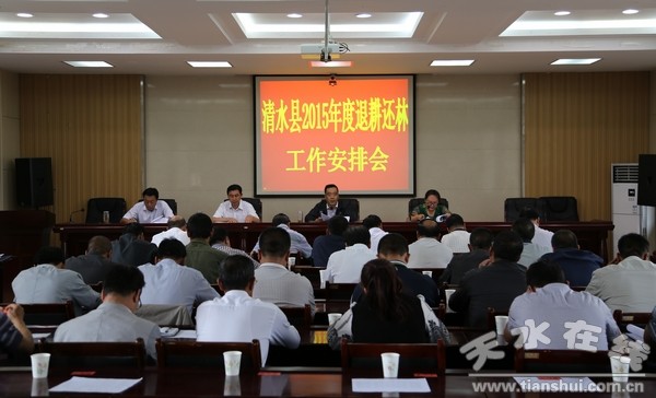 8月31日,清水县召开2015年度退耕还林工作安排会议,总结全县2014年度新一轮退耕还林工程建设成效,提前预安排分解2015年度退耕还林工作任务。会议强调,全县上下要进一步统一思想,提高认识,坚定信心,强化措施,迅速掀起2015年度退耕还林工作高潮,全面推进全县林业工作再上新台阶。