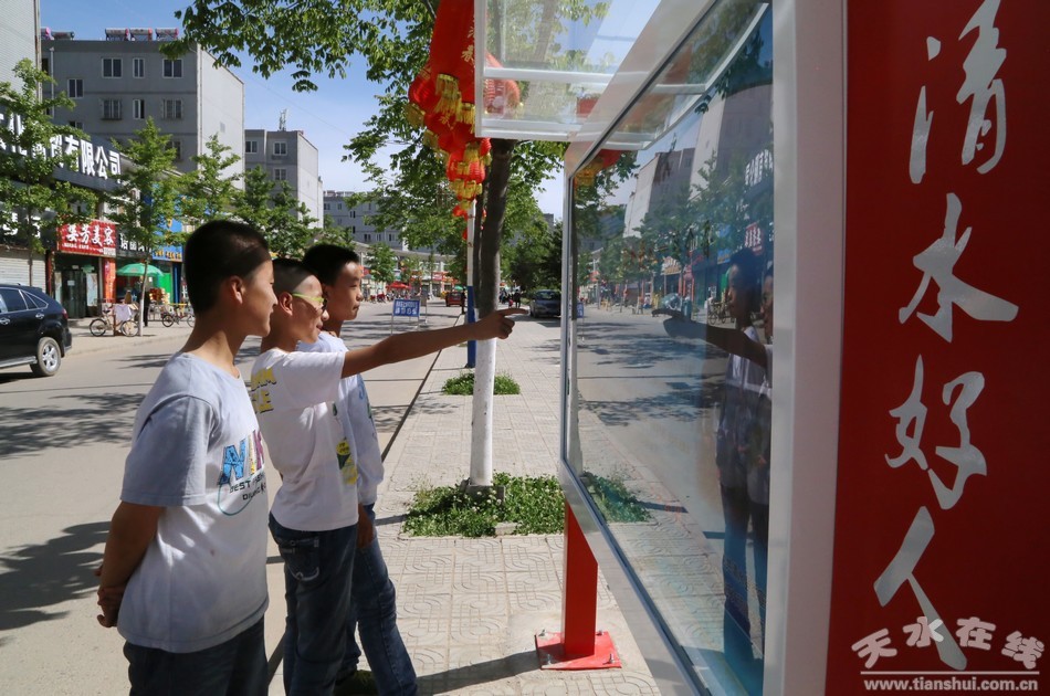 据了解,今年5月起,清水县广开渠道,严格推选模范典型,积极开展“清水好人”评选活动,不断推进群众性精神文明建设和全国县级文明城市创建工作深入开展,弘扬社会正能量。“好人就在身边,需要我们来发现、来寻找、来学习。”清水县为了充分发挥“清水好人”的典型示范作用,特意从全县各行各业、各条战线评选出的“身边好人”中,筛选事迹突出、代表性强、影响力大的人物图像和先进事迹,用图文并茂的形式在县城轩辕广场、中山路、中山华庭小区等一些人流集中的地方,进行大力宣传学习,精心打造出一条清水“好人一条街”。