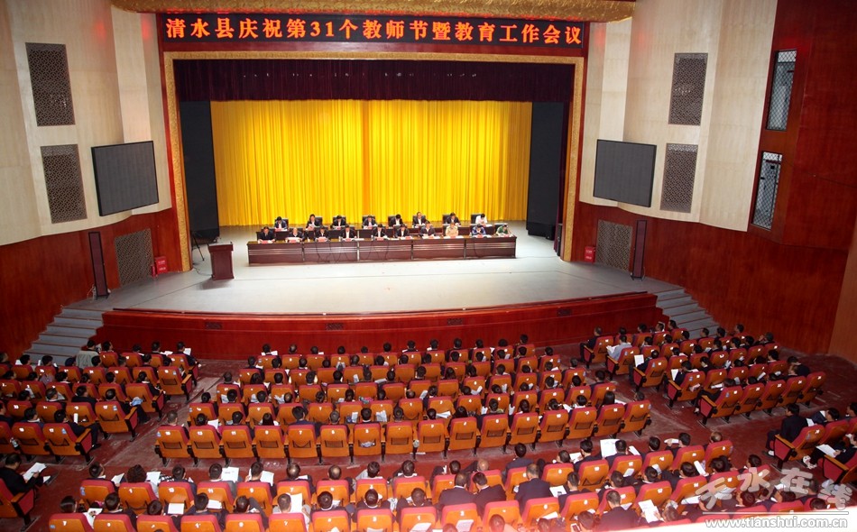 9月9日,清水县轩辕大剧院会场内花团锦簇、气氛热烈,清水县庆祝第31个教师节暨教育工作大会在这里隆重举行。会议表彰奖励了在清水教育战线上取得优异成绩的先进集体、先进个人和教育光荣家庭。