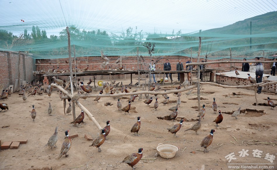 野鸡又名雉鸡,集肉用、观赏于一身,是公认的名贵野味珍禽。在清水县红堡镇崔刘村野山鸡养殖场,笔者看到成百上千的野山鸡毛丰肉满、追逐飞舞,吸引了客人们前来观看、购买。