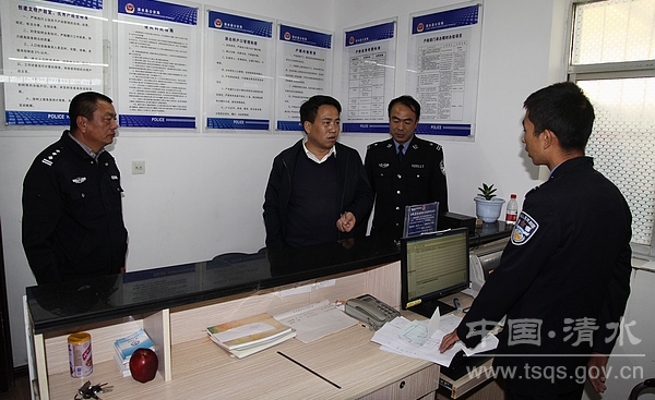 10月15日,清水县委常委、常务副县长牛永祯带领县公安局、安监局等部门负责人深入到贾川、土门、远门、王河等4乡镇,就乡镇基层派出所规范化建设和乡镇安监站运行情况进行了督查指导。