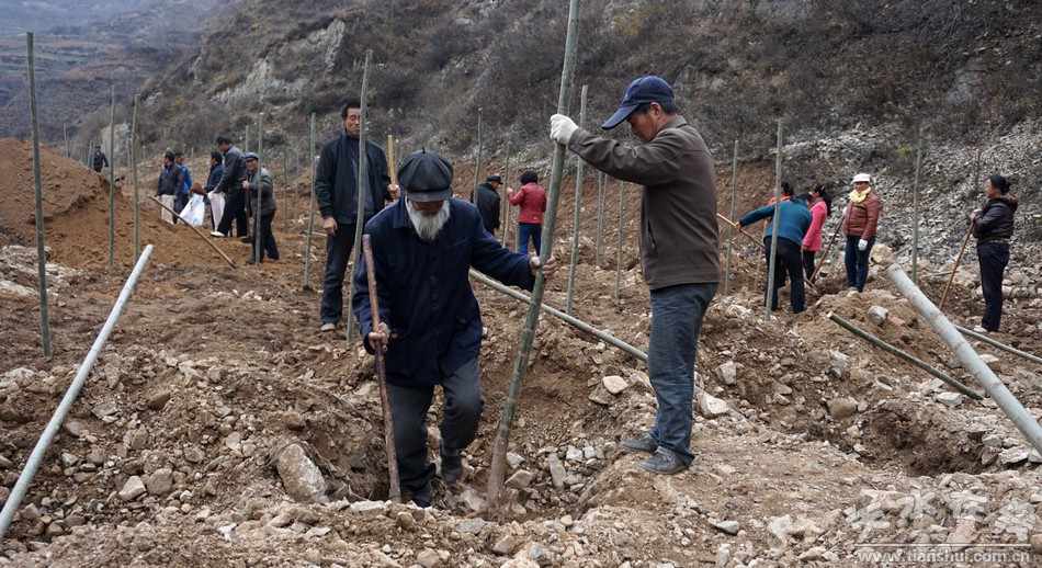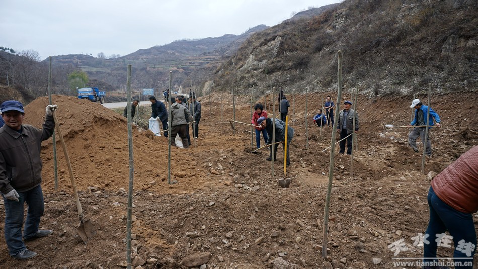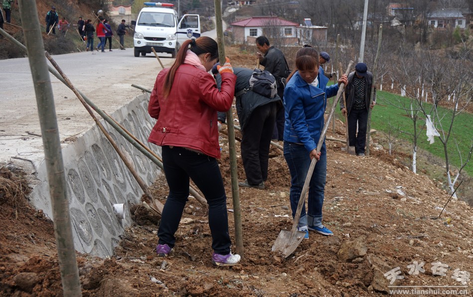 由于清陇路沿线地理条件复杂,绿化任务重、难度大,为加快工作进度,该乡调用大型机械对地形进行了平整及砂石地带树坑开挖,动用翻斗车辆运输肥土3200多方用于场地平整及树坑回填,经过3天的绿化,共栽植行道树4300多苗,对清陇路沿线10公里进行了植树绿化。