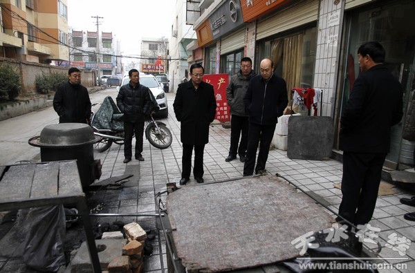 12月23日,清水县委常委、政法委书记王马代,县委常委、副县长蔡俊杰带领县住建局、食药监局、房管局、交警队、综合执法局、消防队、永清镇等单位负责人,深入城区主干道、背街小巷、金河商城、西干河、汽车站等地,就城区环境卫生、乱搭乱建、河道管理、交通秩序、户外广告及城市管理等专项整治工作进行全面督查指导。