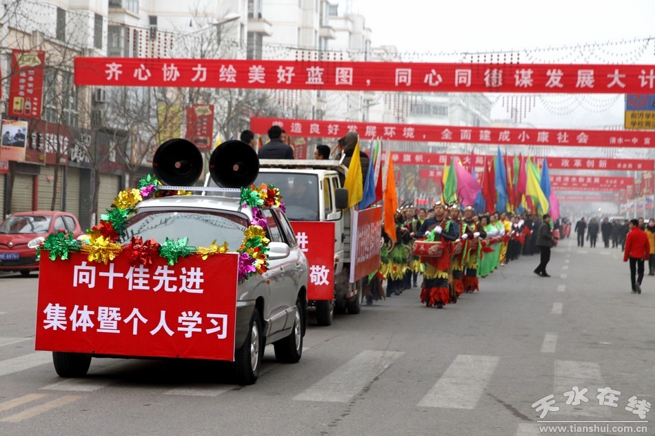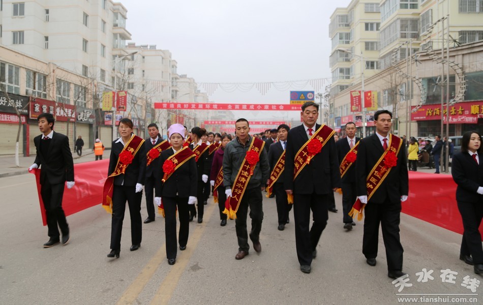 1月9日上午,天水市委宣传部副部长刘越高及清水县四大组织领导为124名受表彰的十佳先进集体代表及个人颁发绶带、佩带红花,并组织这124名受表彰的十佳先进集体代表及个人在县城主干道向全县广大干部群众展示风采,进一步激发全县上下尊重先进、崇尚先进、学习先进、争当先进的强大正能量。
