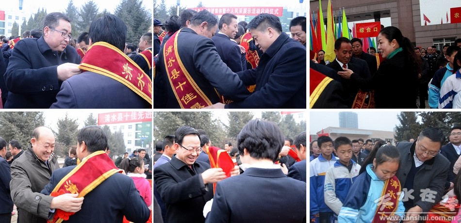 (市委宣传部副部长刘越高及清水县领导刘天波、赵云清、马越垠、王新强、牛军为受表彰的十佳先进集体代表及个人颁发绶带、佩带红花)