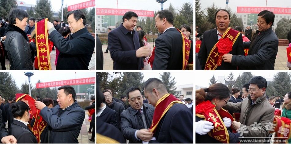 启动仪式上,县委书记刘天波作了动员讲话。刘天波指出,这次受表彰的124名“十佳先进集体和个人”,是群众公认、事迹突出、具有导向性、感召力的时代楷模,虽然大家来自不同行业、不同岗位,但有着共同的特点,就是坚定“中国梦”,弘扬“清水新精神”、甘做“铺路人”,在平凡的生活中做着不平凡的举动,在平凡的岗位上做出了不平凡的业绩。