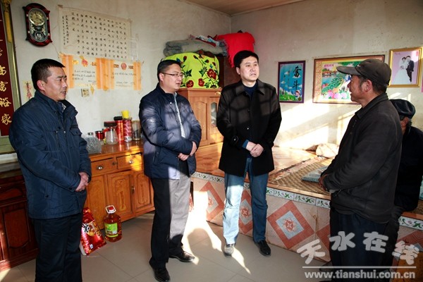 1月14日下午,天水市委组织部副部长王鸿岳来到清水县草川铺乡水泉村,看望慰问了双联联系户,为他们送去大米、食用油等生活物资。清水县委常委、组织部长周济一同慰问。