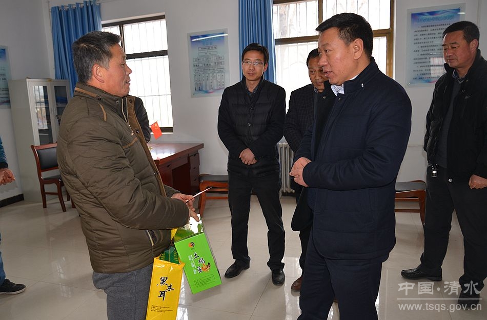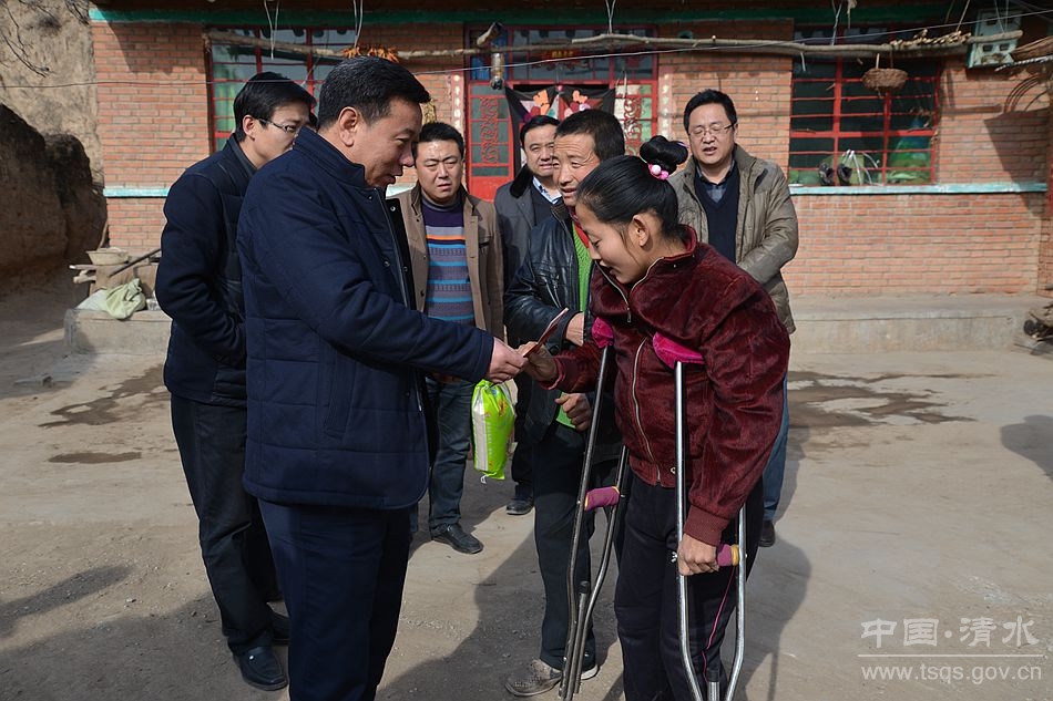 1月29日,中共清水县委副书记、县长马越垠,县检察院检察长杜彦群一行春节前走访慰问驻县部队,离退休老干部、优秀党员、困难党员和老党员、优秀人才,困难职工、老复员军人、五保老人、高龄老人、特困户,二女户、残困户等,表达县委县政府对他们的关怀,向他们致以新春的问候和良好的祝愿。