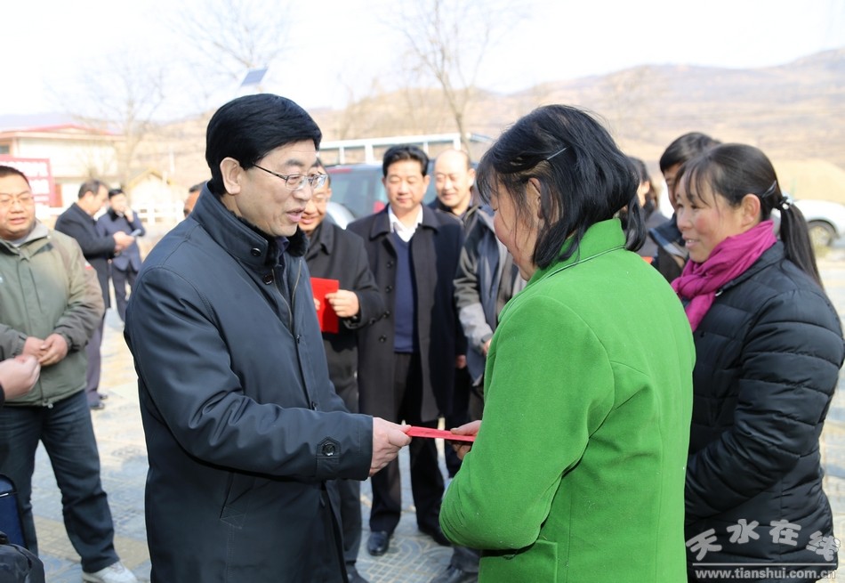 1月31日上午,春节即将来临之际,天水市委常委、纪委书记李美华,市人大常委会副主任刘来生,市政协副主席王振宇带领市委组织部、市民政局、市卫计委、市残联、市总工会等部门负责人深入清水县开展“送温暖”慰问活动。清水县委书记刘天波,县委副书记、县长马越垠,县委常委、纪委书记马利民,县委常委、政法委书记王马代,副县长杨泉陪同慰问。