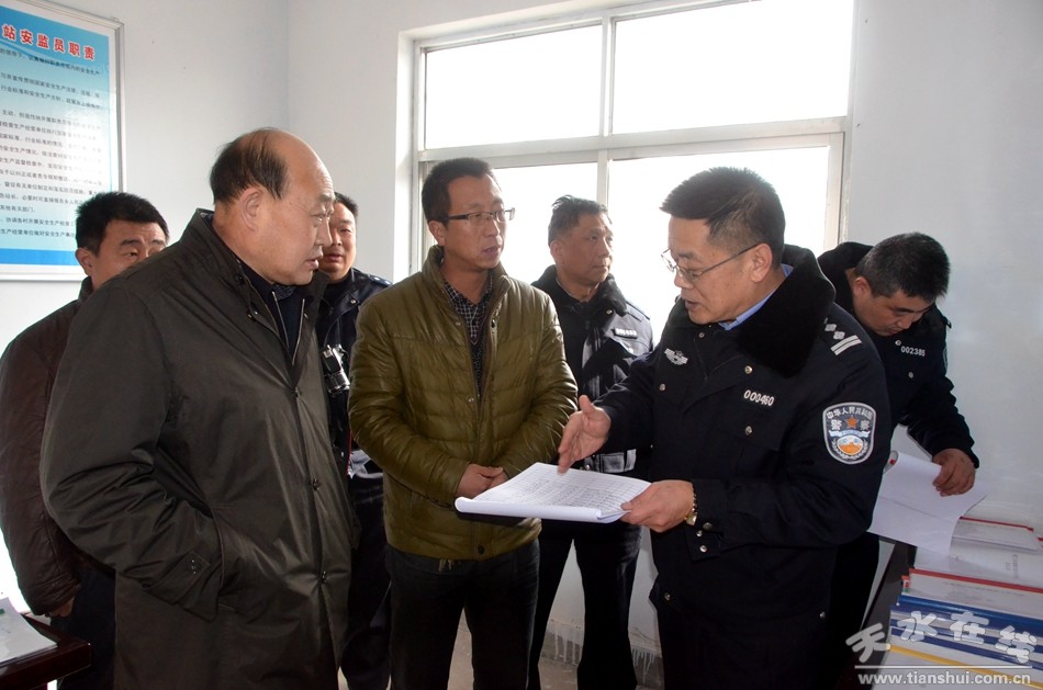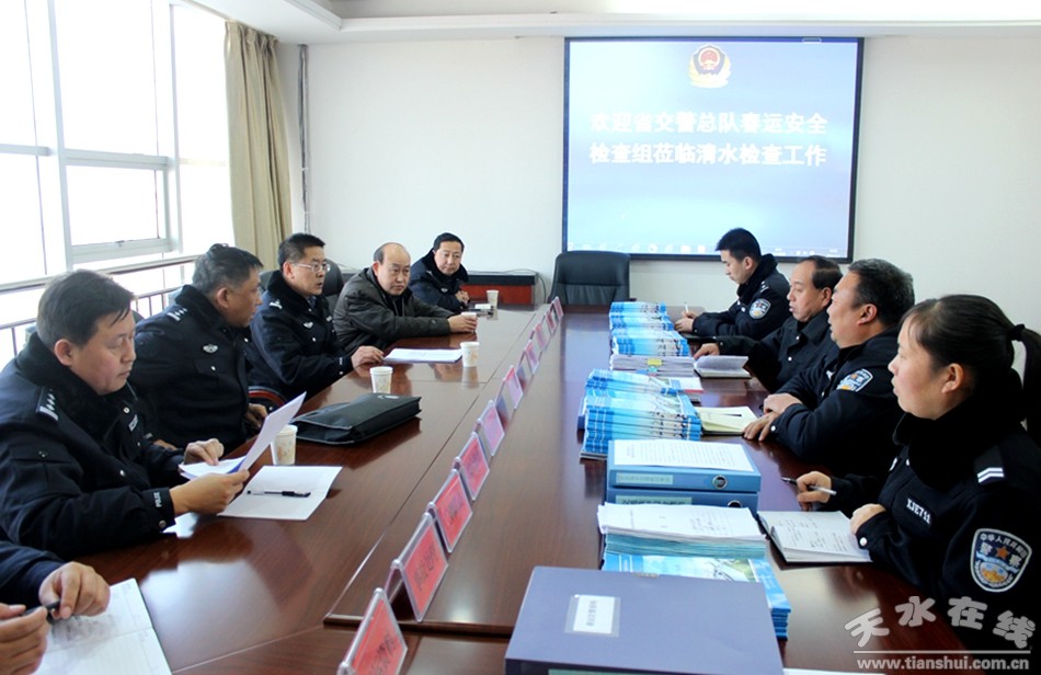 2月1日,甘肃省公安厅交管局秩序处副处长罗建宏带领工作组深入清水县督查2016年春运交通安全管理工作,市交警支队副支队长许维正,清水县委常委、政法委书记王马代陪同督查。