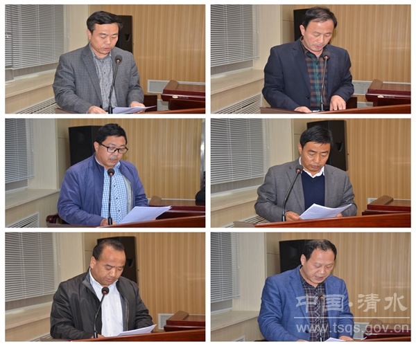 (县编办、监察局、住建局、财政局、教体局、卫计局主要负责人作了表态发言)