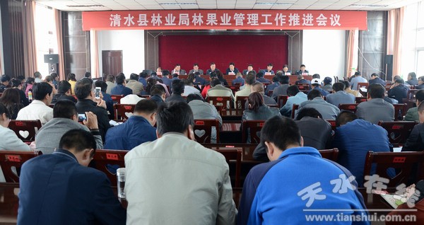 4月29日,清水县召开林果业管理工作推进会,就当前及今后一段时期林果业各项工作进行了安排部署,对2015年度林业系统先进集体及先进个人进行了表彰奖励,并与林业局属有关单位签订了党建、党风廉政建设、林业工作目标管理责任书。副县长秦永斌,县林业局、果业局、森林公安分局全体干部职工及相关单位负责人120余人参加了会议。