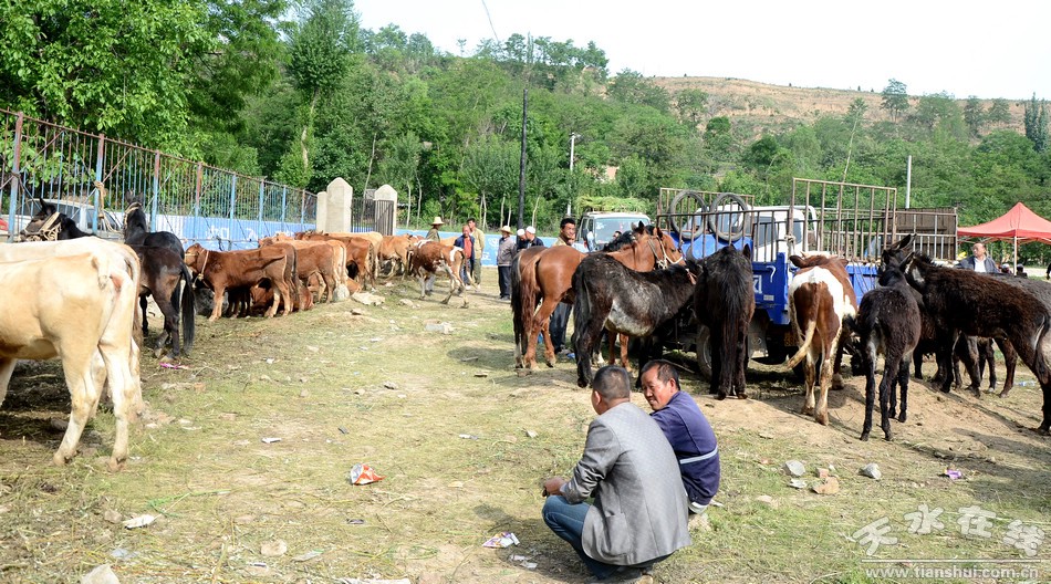 据牲畜交易市场管理人员介绍,清水县每年夏季物资交流会是传统的物交会,而活畜交易自农历四月二十八开始,前后持续十天,交易种类主要有骡、马、驴、牛、羊等家畜。今年交易开始三天来,日平均交易量数约5000多头(匹、只)。客商主要来自河北、河南、陕西、宁夏,甘肃平凉、陇南及天水等地,交易范围广、规模大。
