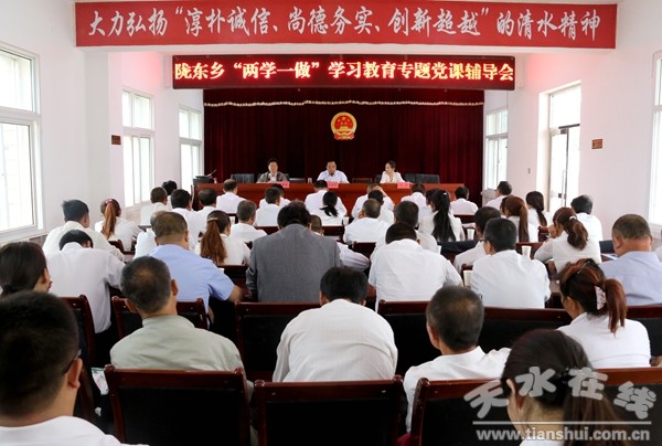 6月26日上午,清水县陇东乡开展“两学一做”专题教育党课辅导。清水县委副书记、县政协主席王新强,县政协副主席、统战部长成接福分别作专题辅导。陇东乡全体党员干部、各村党支部书记、部分乡人大代表聆听了专题辅导。