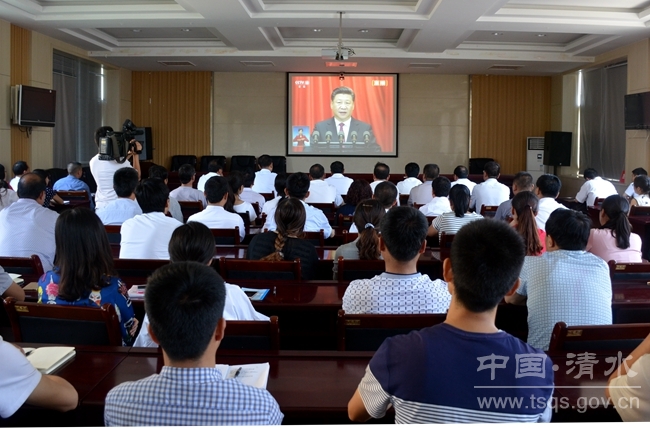 7月1日上午,中共中央纪念建党九十五周年暨七一表彰大会在北京胜利召开。上午十点,清水县委副书记、县长马越垠,副县长张炜、杨泉、秦永斌、马庭坚及县政府办公室、发改局、财政局、统计局、县志办全体党员干部在县政府视频会议室集体收看大会盛况,认真聆听习总书记的重要讲话。