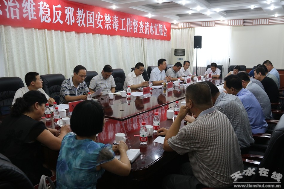 8月5日,天水市委政法委常务副书记陈明达,市委政法委副书记、市综治办主任陈璧田一行带领政法、综治、维稳、防范处理邪教、禁毒等部门负责人就清水县政法、综治、维稳、防范处理邪教、禁毒等工作进行了督查。清水县委常委、政法委书记王马代陪同。