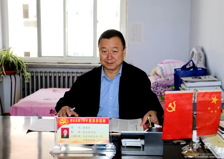 黄慧恩现任清水县第三中学党支部书记,从一线教师到学校党支部书记,他把自己的大半生献给了清水县教育事业。34个春秋,也许在时间的长河中不值一提,可对于一个人一生来讲却绝不能说短。黄慧恩同志热爱教育事业,热心本职工作。作为教育工作者,他把一腔热情全部奉献给了清水的教育事业;作为一名共产党员,他牢记党的宗旨,时时刻刻以一名优秀基层党支部书记及一名优秀共产党员的标准来-严格要求自己,充分发挥共产党员先锋模范作用,作为支部书记,他一身作则,率先垂范,恪尽职守、无私奉献,在普通的工作岗位上做出了不平凡的业绩,忠实实践着“三个代表”重要思想。