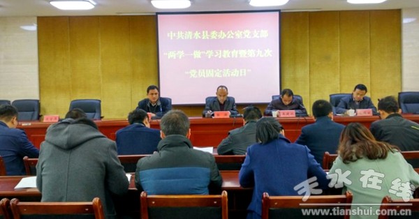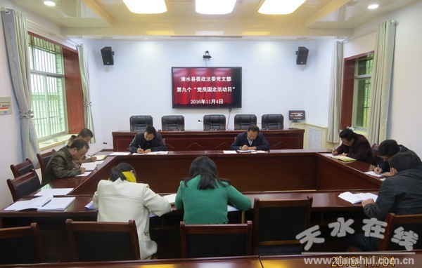 11月4日下午,清水县委政法委党支部开展“党员固定活动日”活动,围绕学习贯彻十八届六中全精神和“如何立足本职岗位,发挥先锋模范作用”为主题开展了专题讨论。县委常委、政法委书记秦永斌主持会议;支部全体党员参加会议。