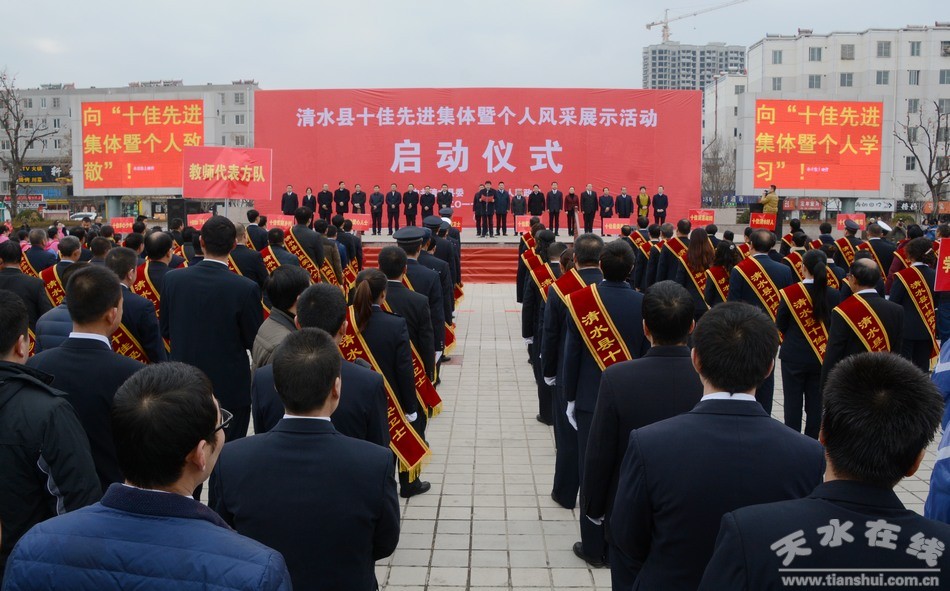 县委副书记、县长马越垠主持启动仪式并宣布清水县十佳先进集体暨个人风采展示活动开始。18乡镇党委书记、乡镇长,县直各单位主要负责人及干部职工代表参加启动仪式。