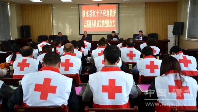 成立仪式上,县委常委、副县长牛永祯作了讲话,县红十字会专职副会长闫立中宣读了关于成立清水县红十字应急救护志愿服务队的决定,县委常委、宣传部长卢芳主持成立仪式。