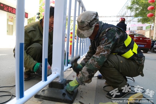 为了创建文明城市,提升县区形象,近日,清水县交警队、住建局等相关单位组织施工人员,对全县城区道路增设了交通护栏。笔者在现场看到,工人们正在对安装好的护栏进行最后的加固。在安装道路交通护栏后,整个县城面貌焕然一新,显得整洁有序,过往市民称赞不已。