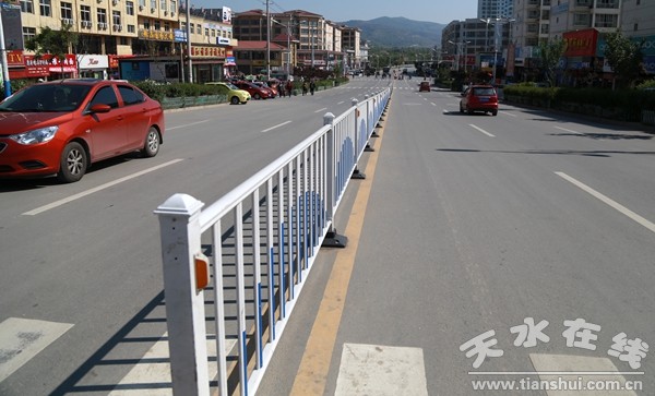 据交警队相关负责人介绍,安装交通护栏将有效的对机动车、非机动车和行人进行交通分隔,阻拦试图横穿马路的行人、自行车或机动车辆等不良的交通行为,从而达到预防交通事故的发生。交通护栏安装以后,洁净宽敞的街道与鲜艳靓丽的护栏互相映辉,筑起一道亮丽的风景线,为全县的文明城市创建增光添彩。目前,清水县已在充国路、永清路、中山路等路段安装隔离护栏4000余米。