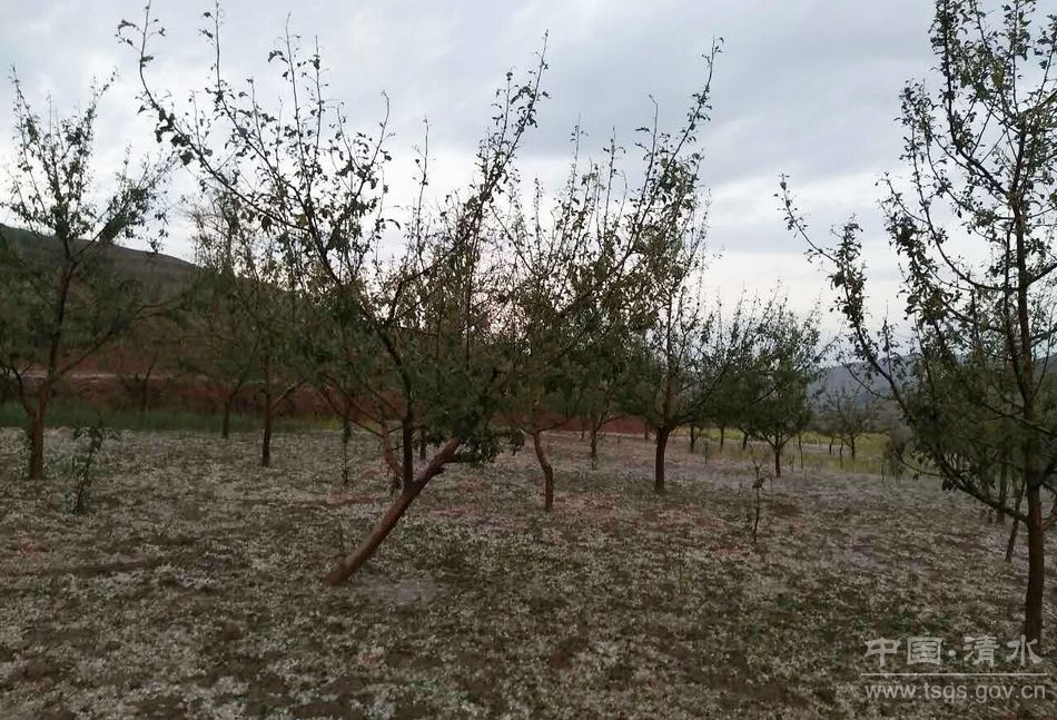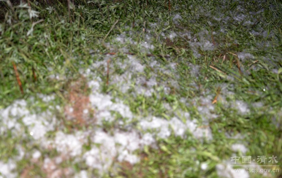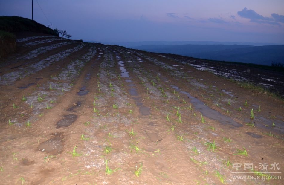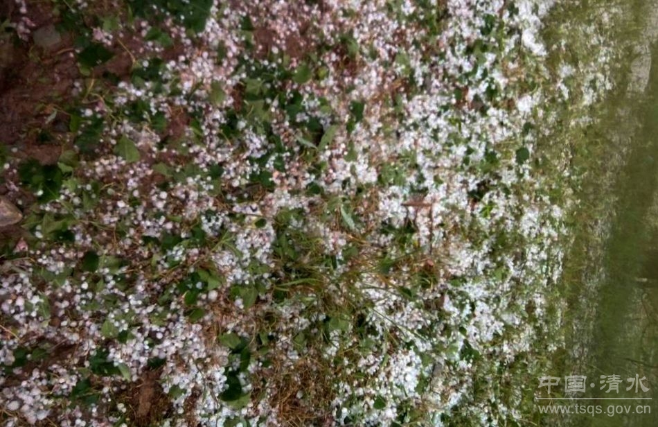 2017年5月18日17时53分,清水县出现短时大风阵雨冰雹天气,冰雹直径最大2厘米,持续最长时间越30分钟左右,造成郭川、金集、土门、黄门4乡镇28村苹果、油菜、玉米、小麦、大樱桃、花椒等农作物受灾。