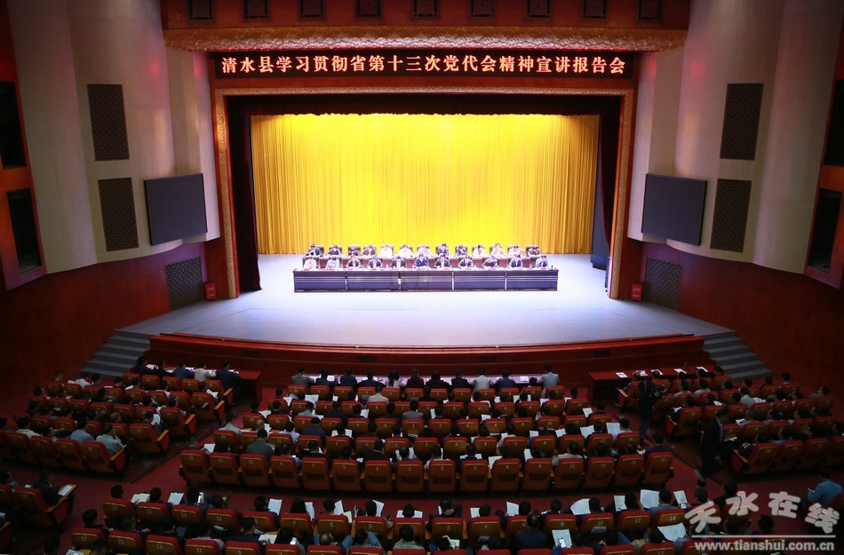 6月5日上午,清水县召开全县学习贯彻省十三次党代会精神宣讲报告会,动员全县上下认真贯彻落实省十三次党代会精神,切实把思想和行动迅速统一到中央、省委的决策部署上来,真抓实干、锐意进取,努力同全国一道全面建成小康社会,为加快建设经济发展、山川秀美、民族团结、社会和谐的幸福美好新甘肃而努力奋斗。