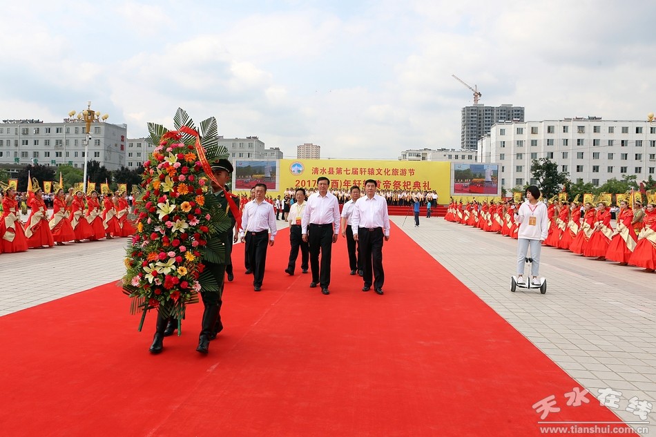 6月29日上午,2017年清水县轩辕文化旅游节系列活动之一轩辕黄帝祭祀典礼在清水县轩辕广场隆重举行。众多嘉宾齐聚轩辕故里,传承华夏文明,瞻仰敬拜人文初祖轩辕黄帝,祈福中华民族繁荣昌盛。